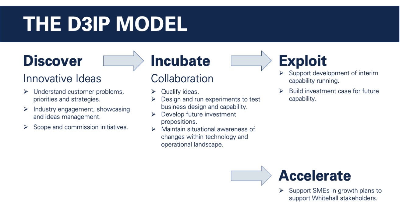 The D3IP operating model, a capability that has been tested and proven within government organisations, provides an alternate and iterative approach to R&D, experimentation, and prototyping.